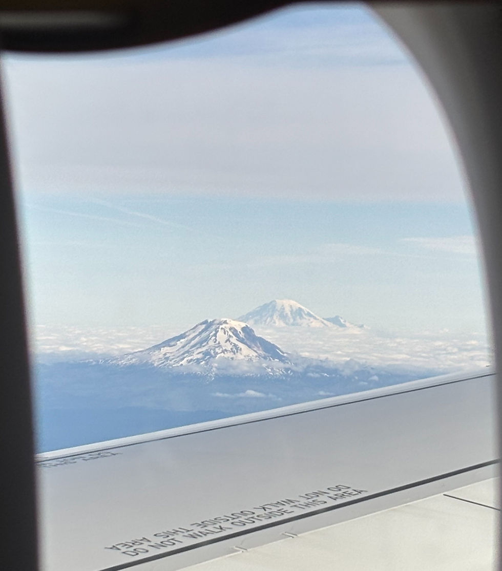 The Pacific Northwest, while not my first time visiting, did not fail to take my breath away. As the plane approached PDX, we were greeted with a picturesque view of two snow-capped mountain peaks. As someone who swears by the window seat, I felt a momentary pride for securing one for this flight. More used to aerial views of cornfields and farmlands, I was in awe at the sight of these beautiful geological works of art, admiring our planet's capabilities.