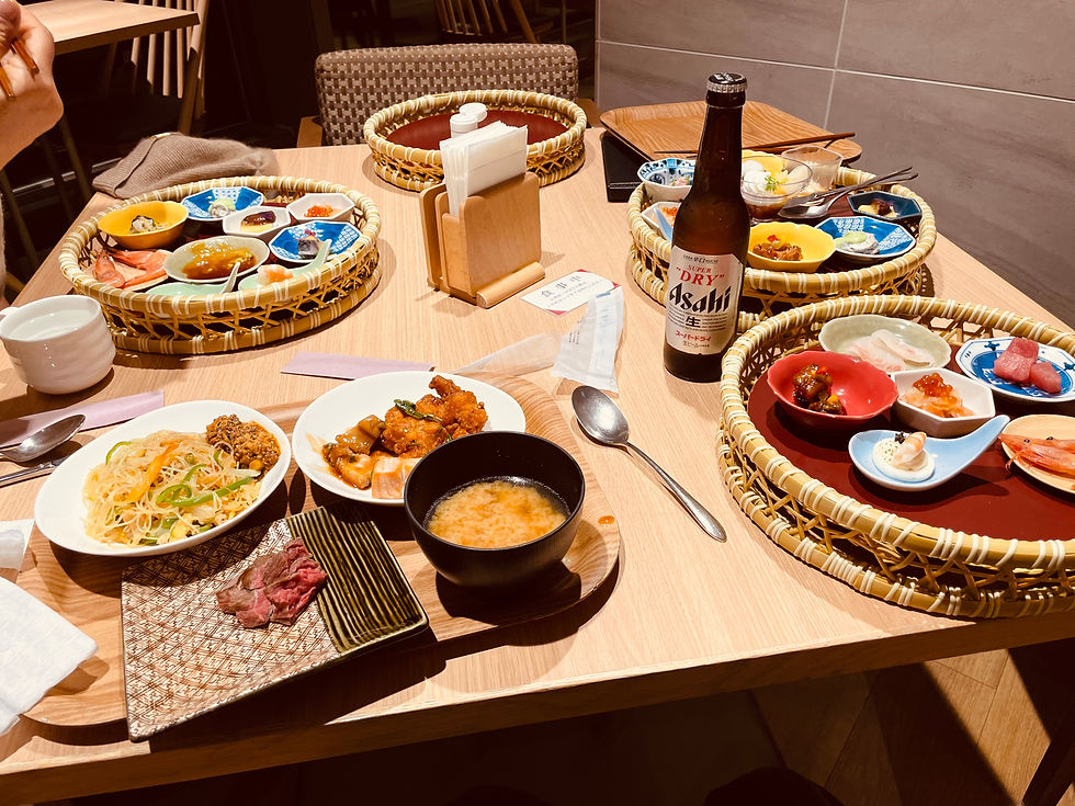 Our exhaustion melted away when we arrived. The hotel exceeded our expectations with its excellent service and well-thought-out amenities. Dinner at the buffet was a highlight -- one of the best I've experienced, with an impressive variety of dishes and a wide selection of beverages.